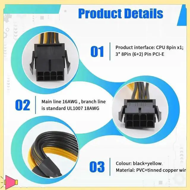 ATX 12V CPU 8 Pin To 3X 8Pin (6+2) Pin PCI-E Male Splitter Power Extension Adapter Cable For Graphics Card