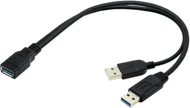 Two USB female connector,One is for USB 3.0 power and data, another one for USB 2.0 power only.The power side cable does not work with iOS phones (Apple), It works with Android phones.