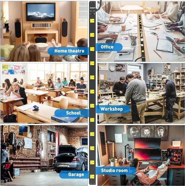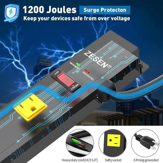 12 Wide Spaced Power Strips 1200 Joule surge protection. Equipped with 12 outlets, 3.74 inches wide-spaced perfect for bulky charger and transformer plug.