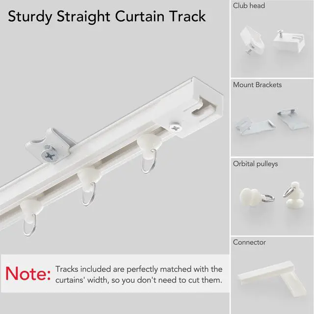 Package includes 1 panel blackout curtain and ceiling track kit(Including some accessories: club head, mount brackets,orbital pulleys, connector, hooks. )