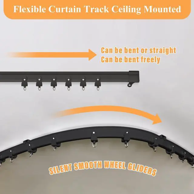 MaKefeile Flexible Ceiling Curtain Track: made of high quality thickened PVC and embedded metal plates, paired with silent pulleys for quieter and smoother curtain operation,it can be bent into various shapes such as U-shape to suit various scenes