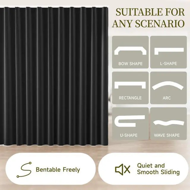 Room Divider Curtain with Ceiling Mount Track Blackout Curtains Thickened Ceiling Privacy Room Divider Screen, Flexible Ceiling Track Window Curtain Panels for Living Room Bedroom