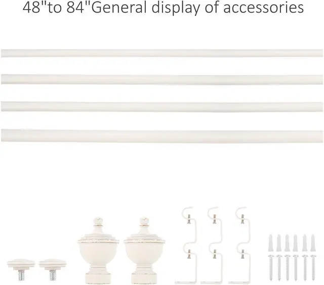 1. Our rod set includes 2 rods ,2 finials and 2 brackets for 28-48"; 3 rods, 2 finials and 3 brackets for 48-84" and 84-120".