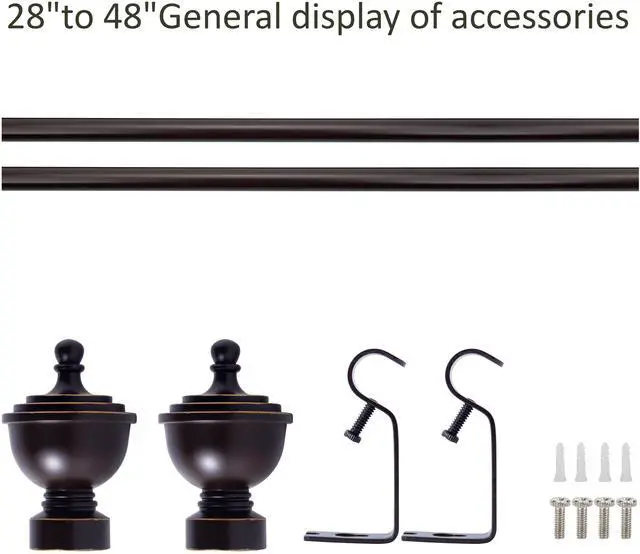 1. Our rod set includes 2 rods ,2 finials and 2 brackets for 28-48"; 3 rods, 2 finials and 3 brackets for 48-84" and 84-120".