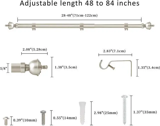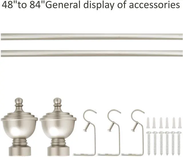 1. Our rod set includes 2 rods ,2 finials and 2 brackets for 28-48"; 3 rods, 2 finials and 3 brackets for 48-84" and 84-120".