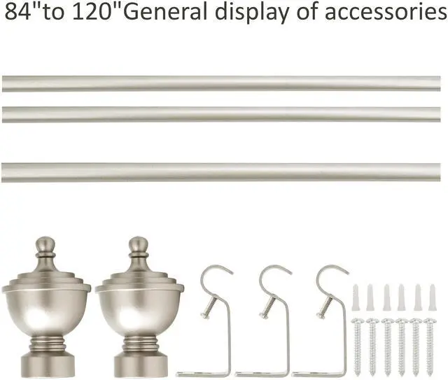 1. Our rod set includes 2 rods ,2 finials and 2 brackets for 28-48"; 3 rods, 2 finials and 3 brackets for 48-84" and 84-120".