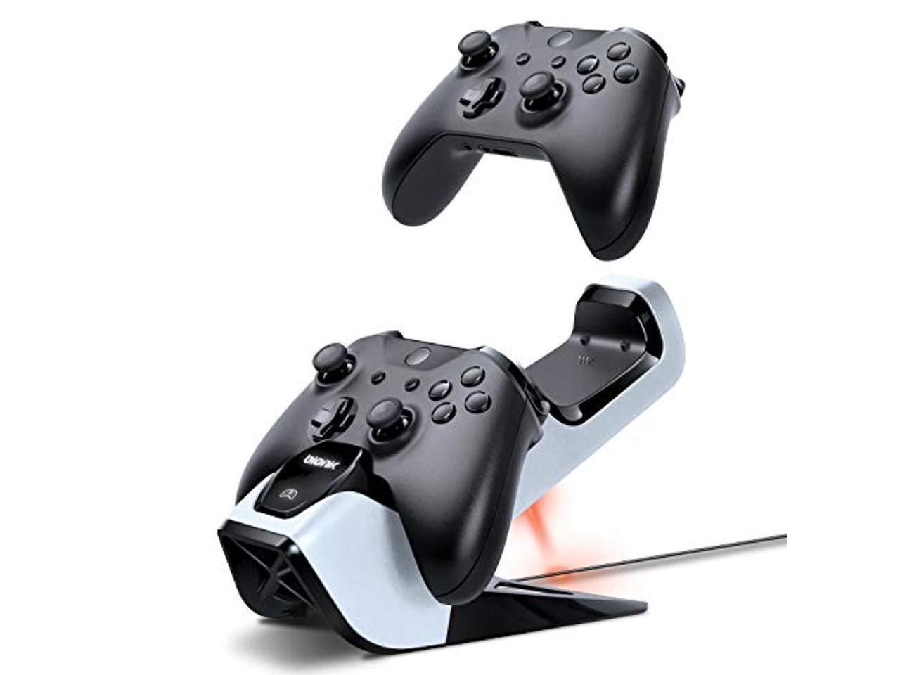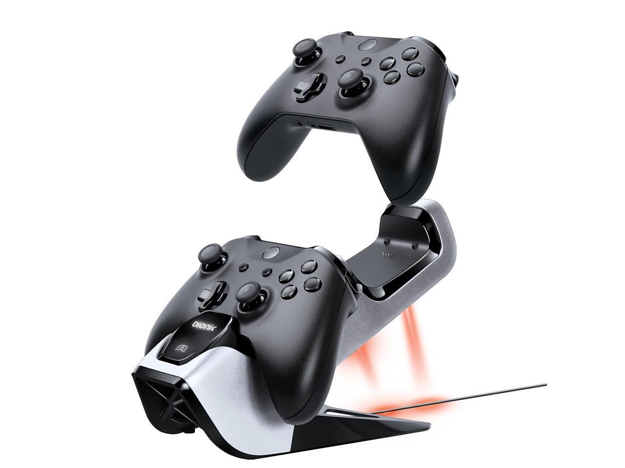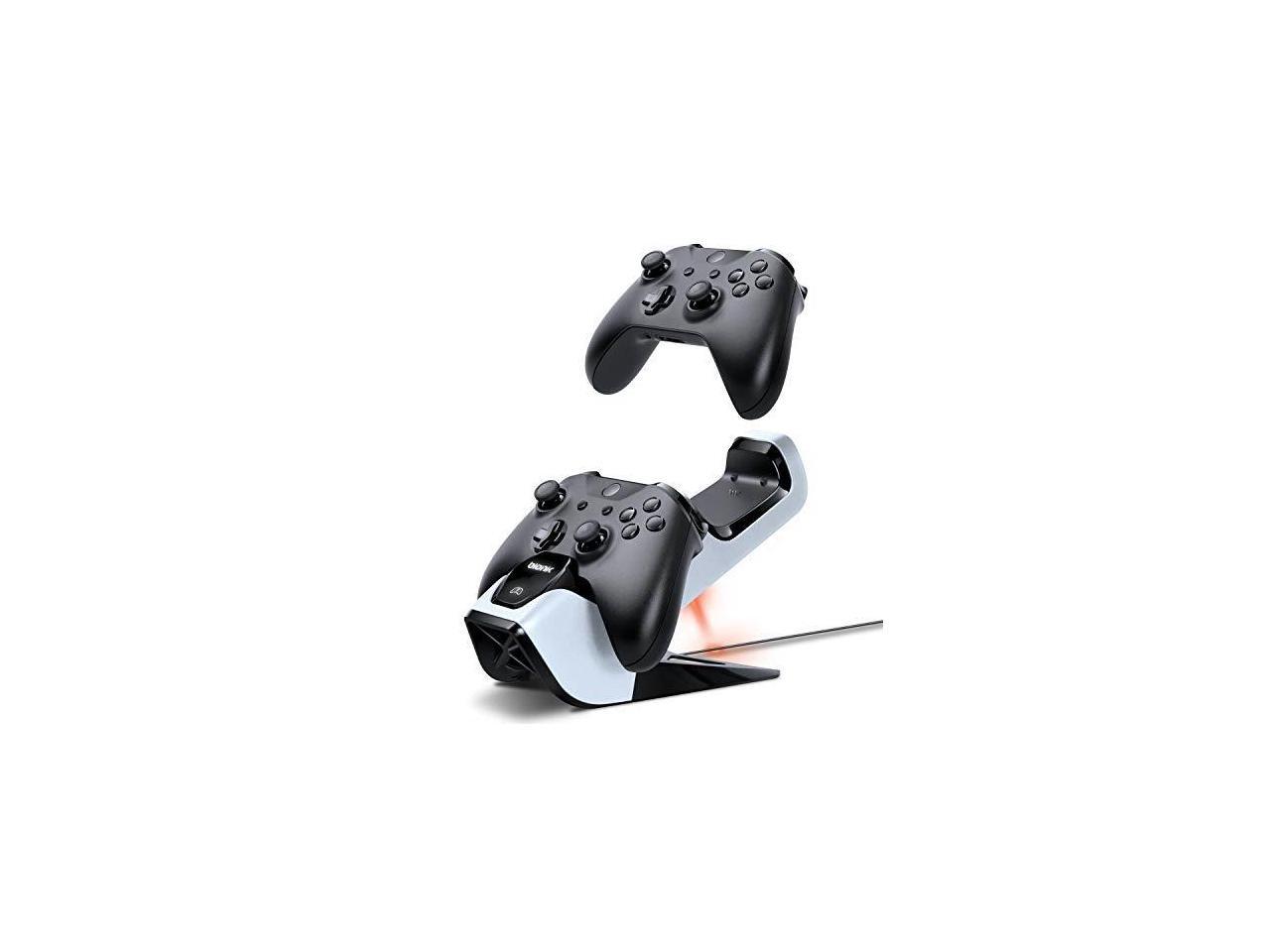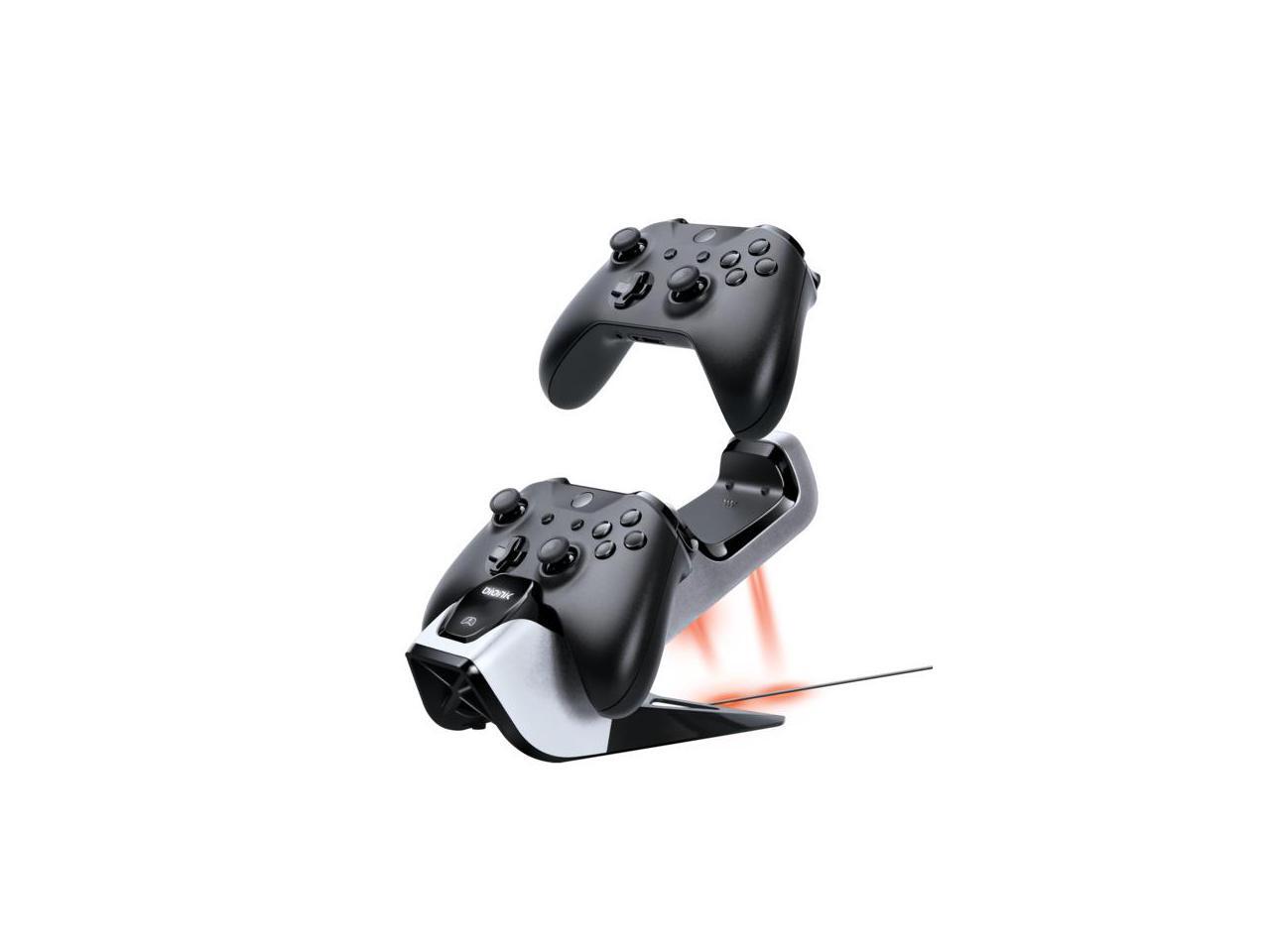 High-capacity dual charge dock with advanced rechargeable battery packs provide power for up to two Xbox One controllers.