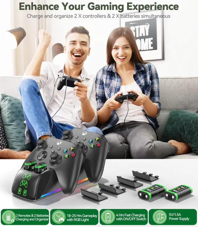 [ Fast Charging Dual Xbox Batteries and Controllers] Xbox Series Skins Large-capasity xbox controller battery pack provides you 18-25 hrs long playing time but only needs 3-4hrs charging time. xbox batteries and controllers Charger station with dual battery and dual controller slots for charging, Xbox Series X Cases extend your gaming time and never miss a second of gaming.