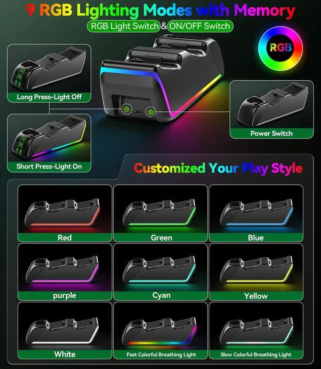 [ LED Indicators with ON/OFF Switch]The LED indicator showing charge status of xbox batteries & controllers: red light-charging, green light-fully charged/standby.Xbox Series Skins Xbox Series X Cases By pressing the button to control the color modes and power switch, you can turn off the charging function separately.