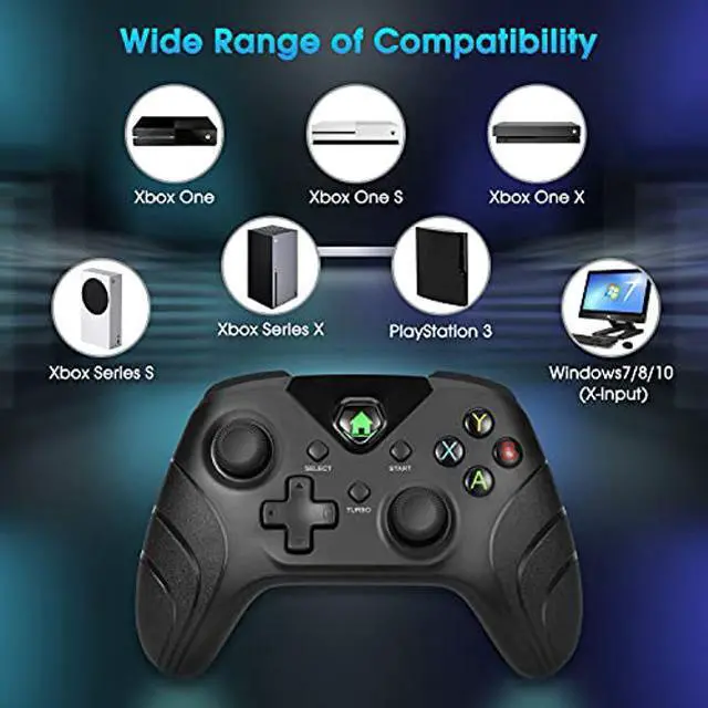 "Extensive Compatibility" This wireless controller works with full versions of Xbox One (Xbox One, Xbox One S, Xbox One X, Xbox Series S, Xbox Series X), as well as PS3 and Windows 7/ 8/ 10 (X-INPUT). 2.4G Wireless Connection, Without Any Drivers, Plug and Play; Allows you to play all available games on the consoles.