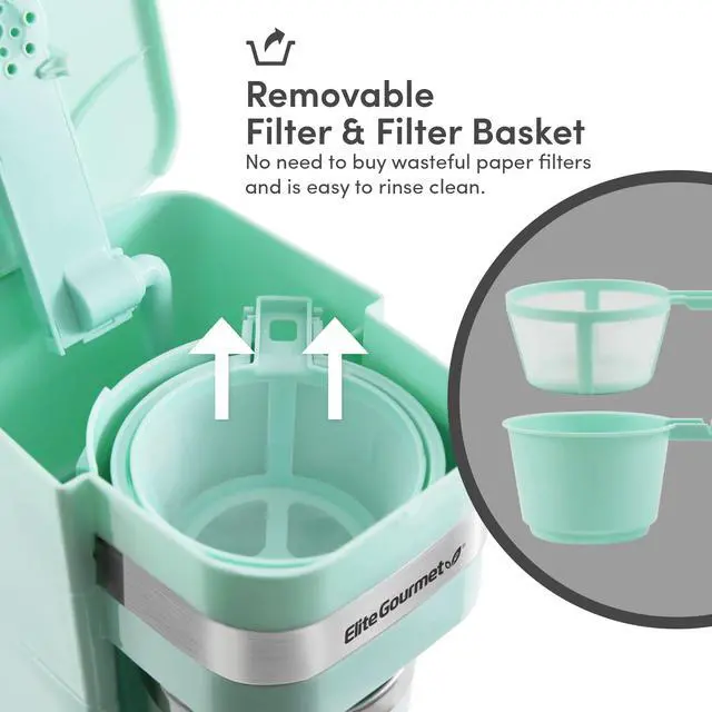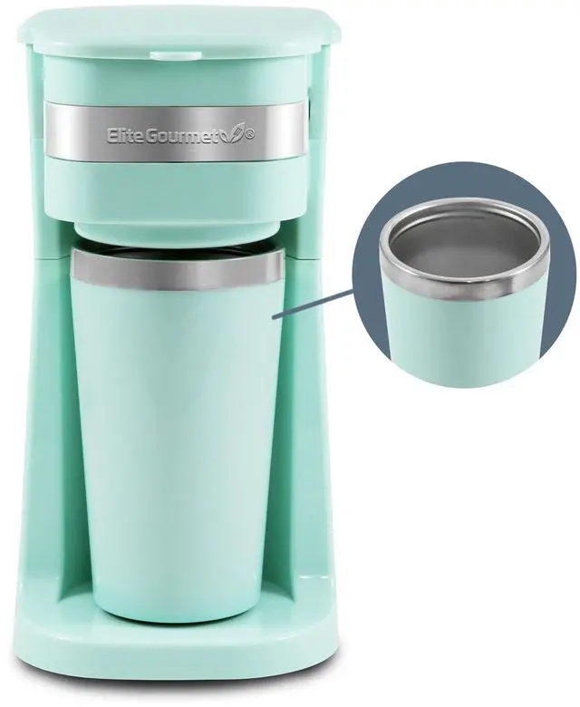 EVERYTHING YOU NEED: The Elite Gourmet Personal Single-Serve Coffee Maker has everything you need to enjoy hot fresh coffee. Comes complete with coffee maker base, travel mug, lid and reusable filter.