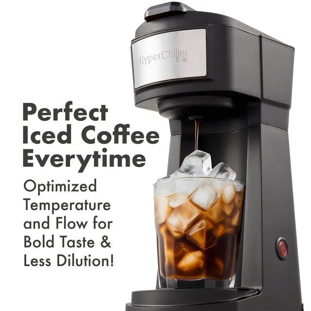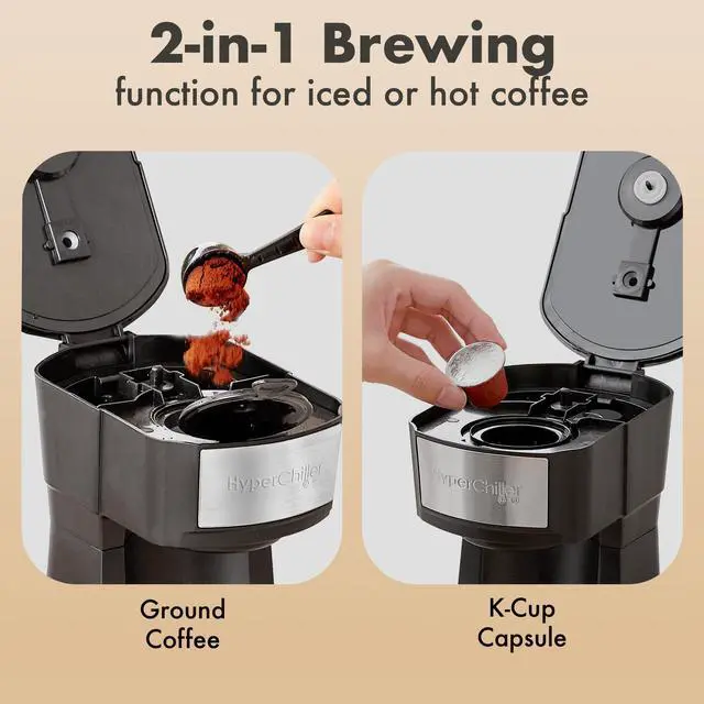 HyperChiller EHC210N Iced/Hot Coffee Maker, K-Cup or Coffee Grounds, 8, 10 or 12oz Pours, Removable K-Cup Holder and Reusable Mesh Filter, Drip tray, Black/Stainless-Steel