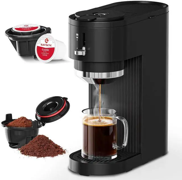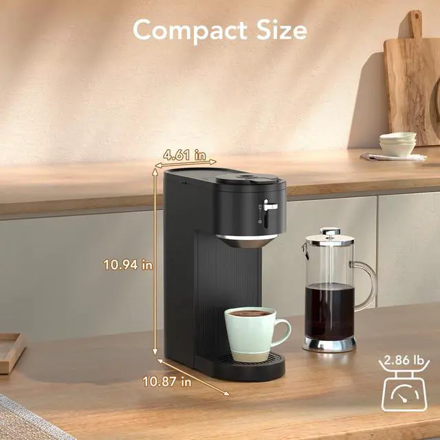 Single Serve Coffee Maker Brew with Coffee Pods & Grounds, Compatible with Kcup Coffee Pods, Small Sizes Up to 6 8 10 12 14 Oz, 14 Oz Water Reservoir, Easy to Clean for Office Travel Home, Black