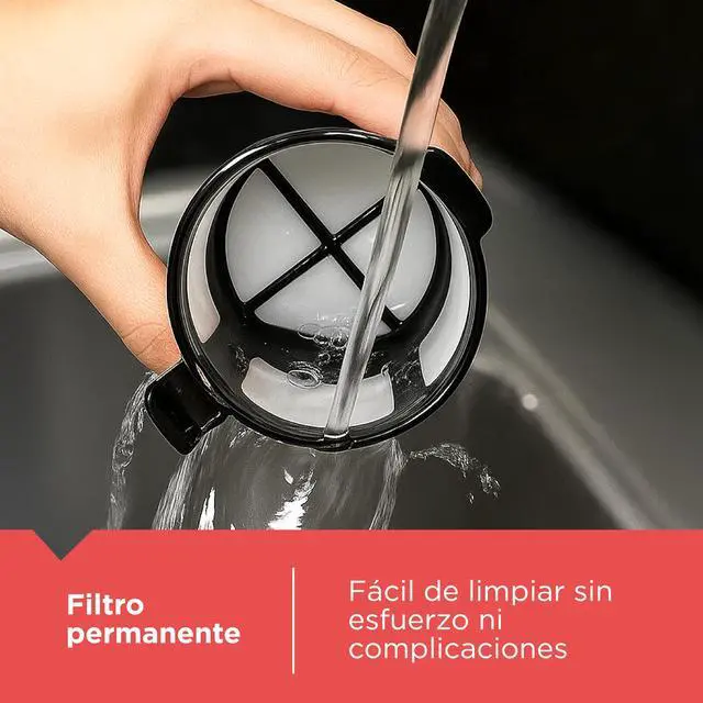 No need to buy wasteful paper filters. The mesh metal filter works with grounds or soft pods, and is easy to rinse clean.