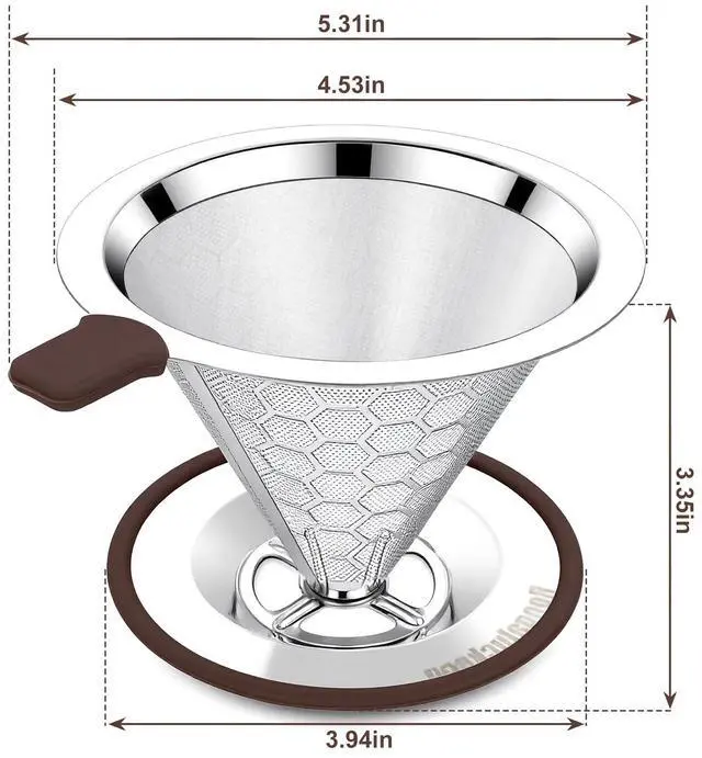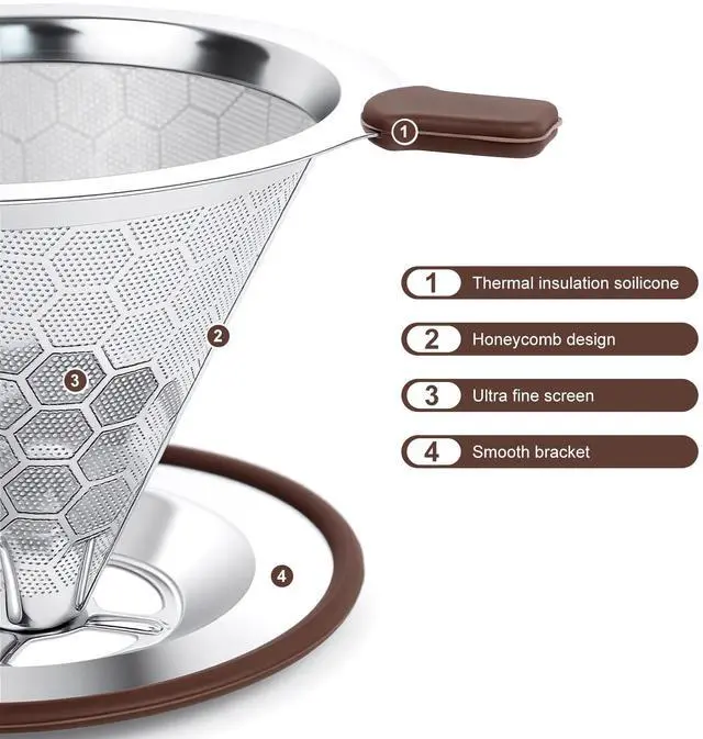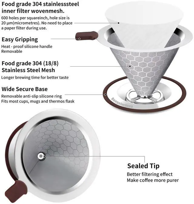 Pour Over Coffee Dripper, Stainless Steel Coffee Filter, Paperless Reusable Coffee Filter, Metal 600 Mesh Strainer Coffee Maker Single Cup Brewer 1-2 Cup