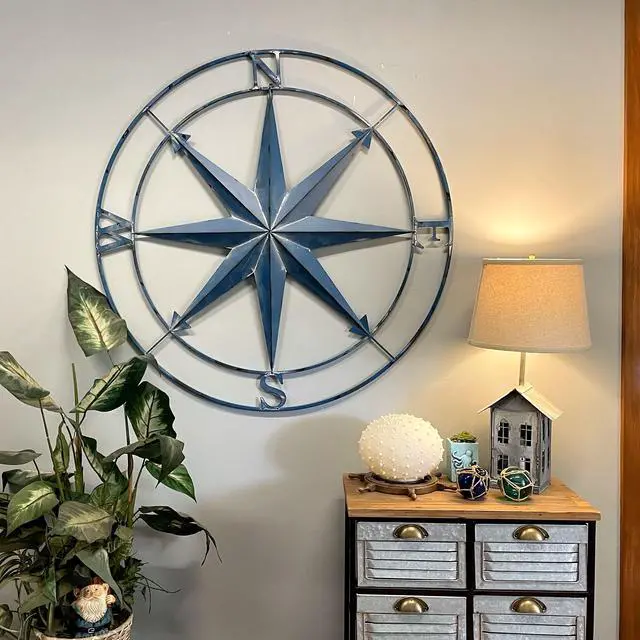 Let the compass guide your style, offering not only visual appeal but also a sense of adventure and exploration. Embrace the maritime spirit and elevate your decor with this striking wall hanging that celebrates the timeless allure of the seas. Whether you're in a coastal abode or a landlocked house, this nautical compass rose is sure to be the center of attention in any maritime-themed living space.