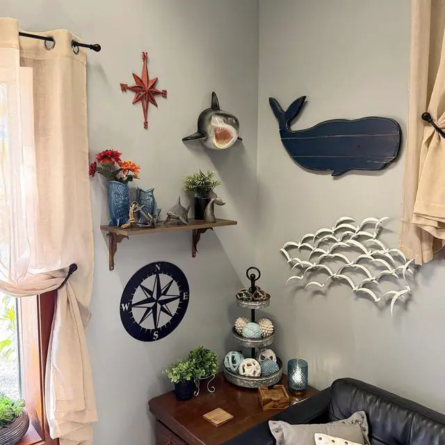 To care for your piece, just dust or wipe gently with a soft dry cloth. This shark wall mount suits a variety of decor styles, from nautical and coastal to surf shack, pirate, or ocean themed spaces. Hang it in an entryway to greet guests with seaside personality, in a bathroom with beach towels, or in a bar area or media room for a whimsical conversation starter. Its also a fun touch for a pool house, lake cabin, or vacation rental with a nautical theme. Ocean lovers, shark enthusiasts, surfers and beachcombers will all appreciate this unique wall sculpture.