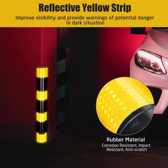 - High Visibility - These 4pcs 31" Reflective Corner Guards come in a round shaped design with reflective yellow safety strips to ensure improved visibility especially at night, guiding your driving and parking while providing warnings of potential danger in both daytime and low light conditions