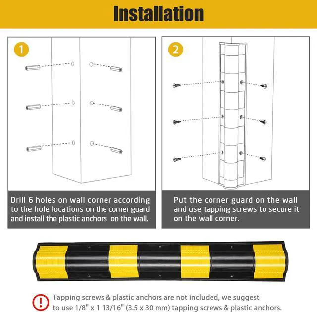 - We recommended using 1/8" x 11 13/16" (3.5 x 30 mm) tapping screws & plastic anchors to install it.