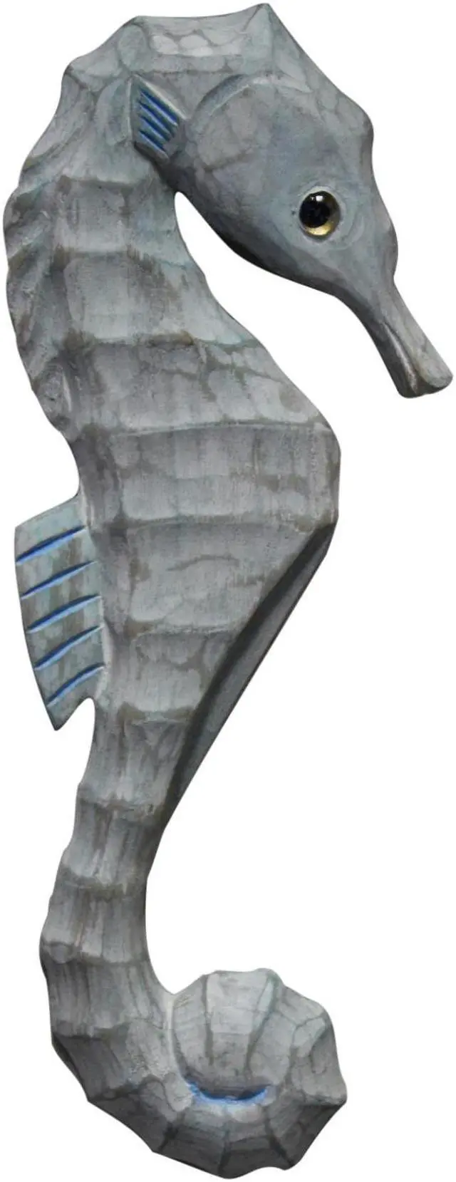 The hand-carved wooden texture, muted beachy color and charming seahorse design of this piece of wall decor make it a beautiful coastal addition to any home. Its versatility complements a wide variety of decor and styles. Whether your decor is more coastal and sophisticated or beachy and fun or nautical and preppy, this piece of wall decor will look wonderful in your home.. Measures 14 x 5 1/2 x 12 inches. Made of carved wood, painted design. Sawtooth hanger on back for hanging. Due to hand crafted nature of the item and material used some slight variations in color and texture might occur.