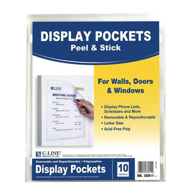 - Peel & Stick Display Pockets let you post signs anywhere