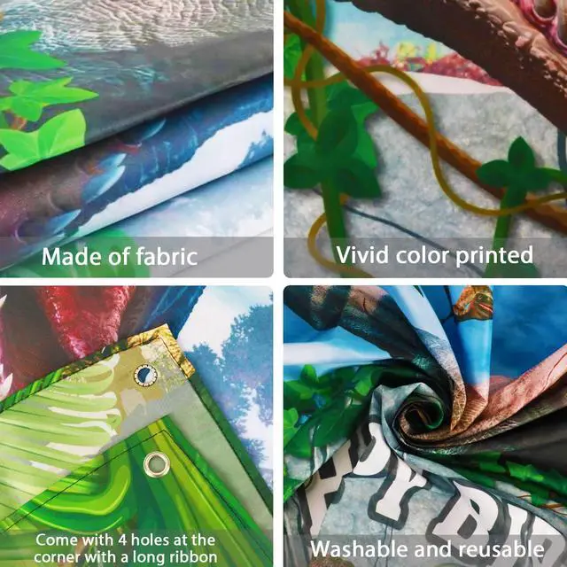 Easy assembly: There are 4 copper holes strategically placed in the corners of the dinosaurs backdrop, coming with a 13 feet white string. It's easy to install it anywhere you want, allowing for more time to enjoy the party or take photos.