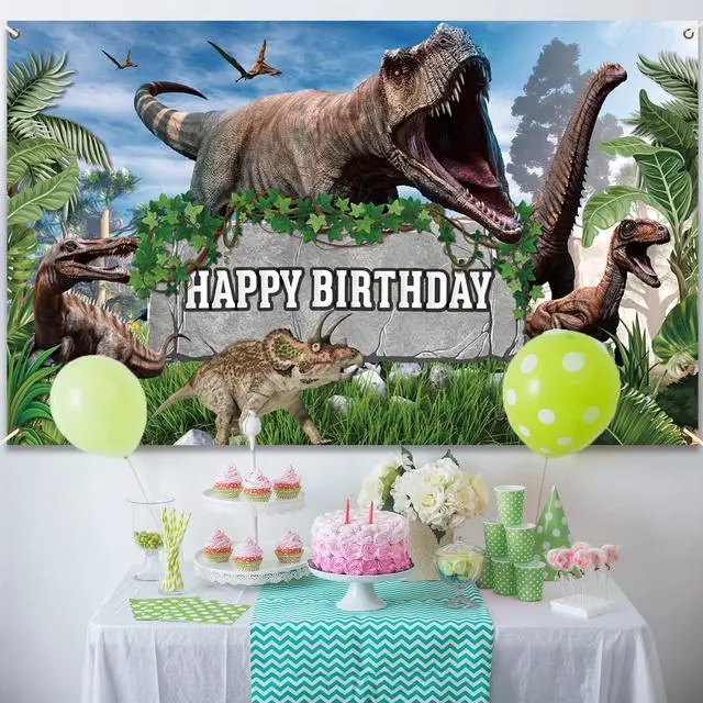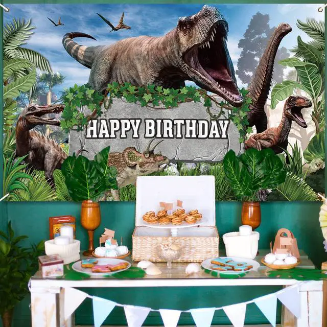 Packing includes: a piece of dinosaurs happy birthday backdrop, measuring 73.2 x 43.2 x 0.01 inches, comes with a 13ft white string; Big enough to suit any themed parties and perfectly satisfy all photo requirements.