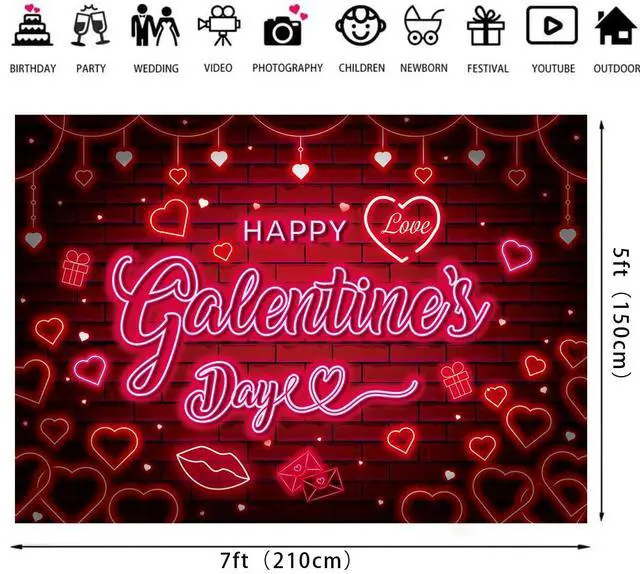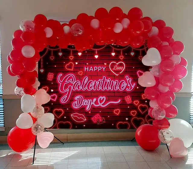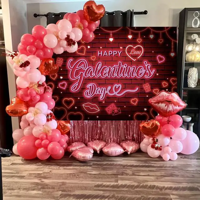 Happy Galentine's Day Banner Backdrop 7x5FT Red Pink Neon Party Decorations Girls Party Decor Background Happy Galentine's Day Party Decorations (84'x60')