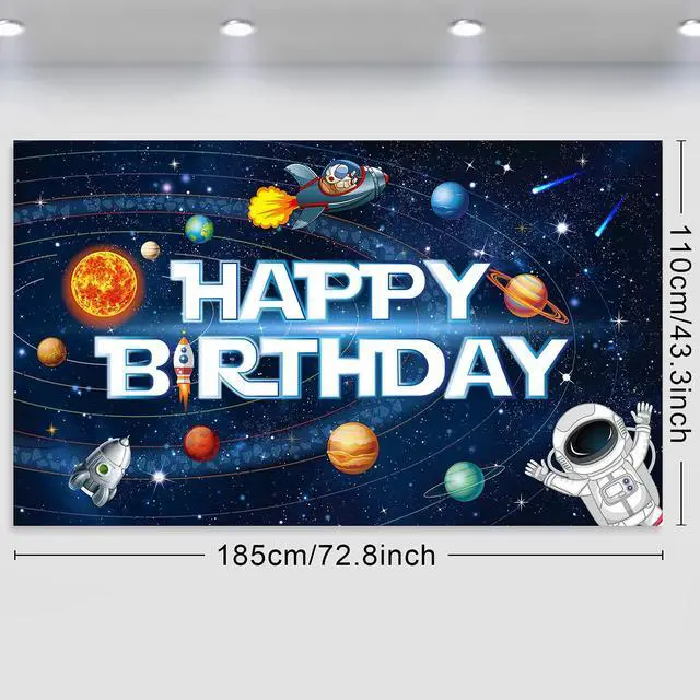 Solar system design: the solar system backdrop features solar system planets with a happy birthday sign upon a beautiful backdrop, making it a perfect decoration for classrooms or any outer space themed party.