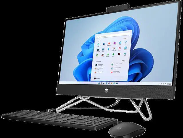 OverviewThe HP All-in-One blends the power of a desktop with the beauty of a modern display. Powered by an Intel® processor, bring the cinema to you with a three-sided micro-edge, Full HD display and dual speakers. This AiO design includes sustainable materials and is designed to keep your space clutter-free with thoughtfully placed ports. FeaturesFast performing with ample storageGet things done easy and fast with the performance of an Intel® processor, and ample storage space. Immersive Full HD entertainmentEnhance your viewing experience with FHD crystal-clear images from any angle on a 3-sided micro-edge display.