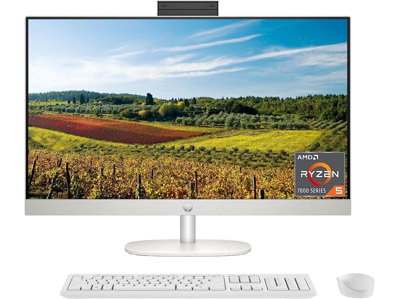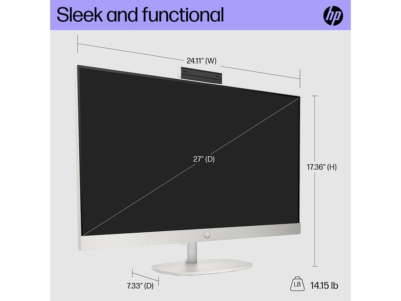 HP 27 inch All-in-One Desktop PC, FHD Display, AMD Ryzen 5 7520U, 8 GB RAM, 512 GB SSD, AMD Radeon Graphics, Windows 11 Home, 27-cr0060 (2023) Computer