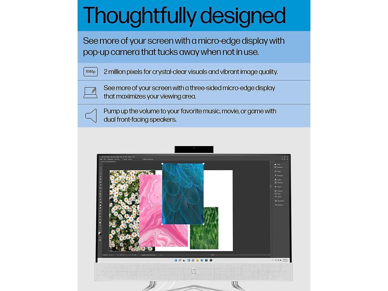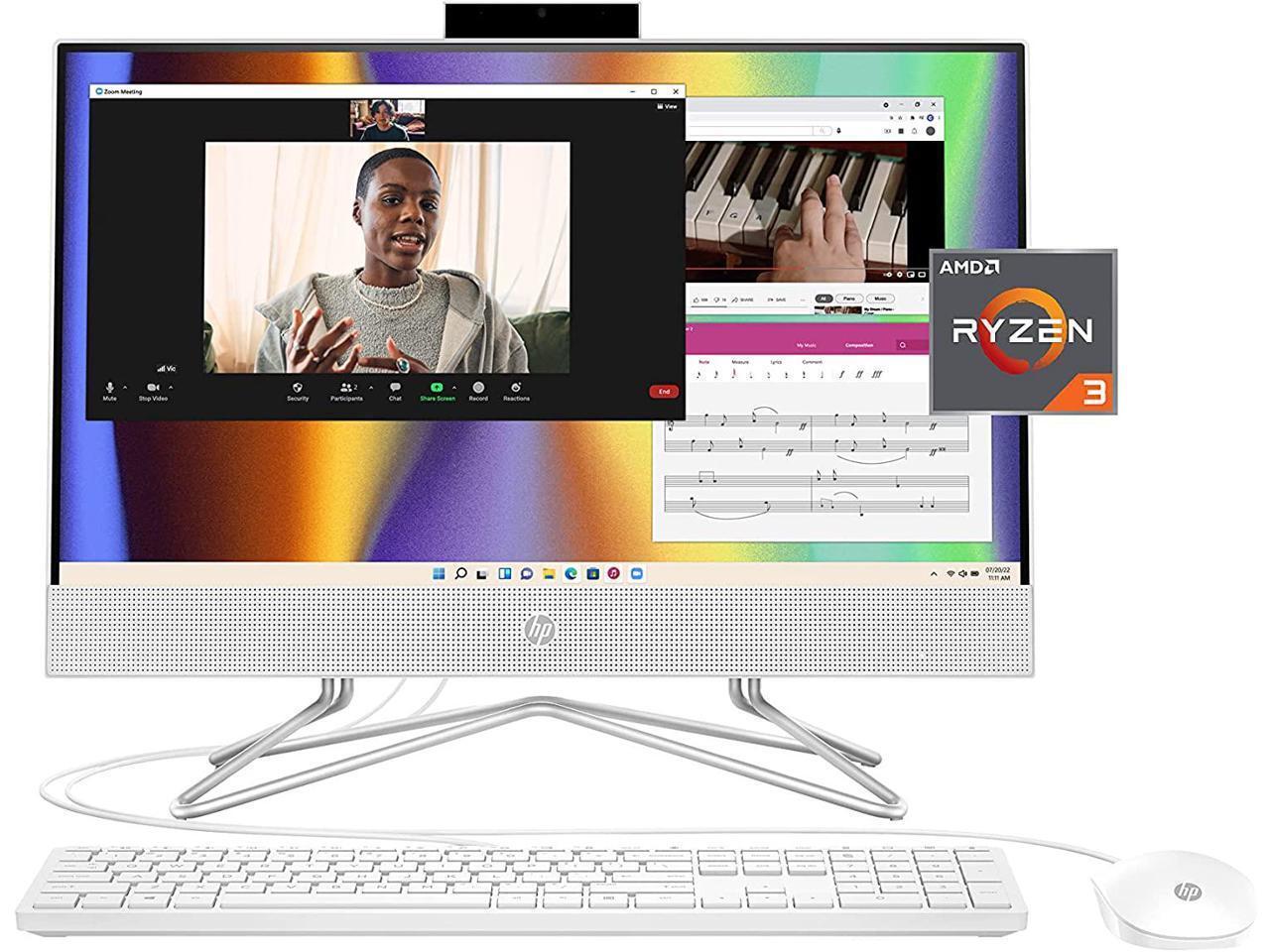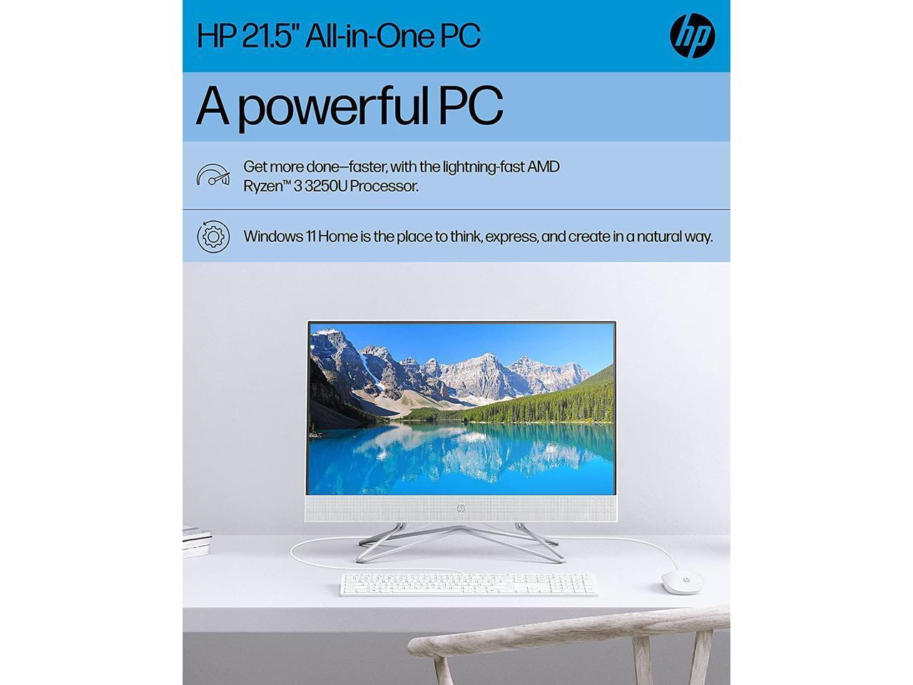 HP All-in-One PC Desk Computer, 21.5" Full HD Micro-Edge Display, AMD Ryzen 3 Processor, AMD Radeon Graphics, 8 GB SDRAM, 256 GB SSD, Windows11 Home OS, MU-MIMO, Bluetooth, and Wi-Fi (22-dd0032, 2022)