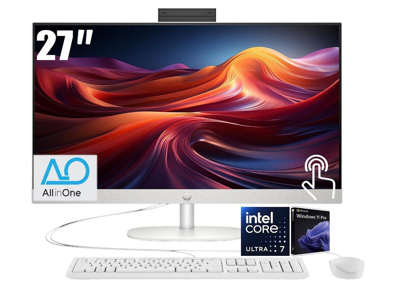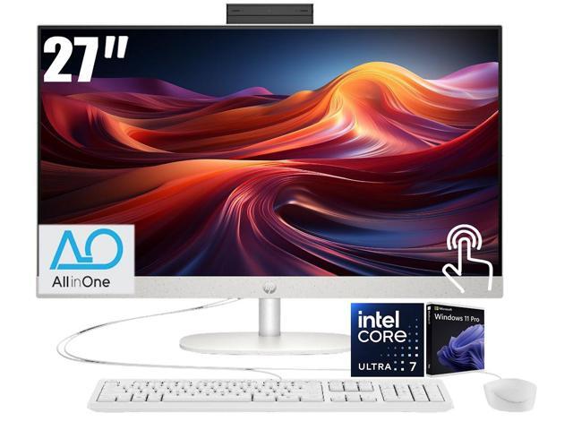 HP 27 All-in-One Desktop, 27" FHD (1920 x 1080) LED Display, Intel Core 7 Processor 255U (Up to 5.2GHz), 32GB DDR5 RAM / 1TB SSD, Wi-Fi 6, Bluetooth 5.4, Copilot, Wired Keyboard and Mouse, Win11 Pro