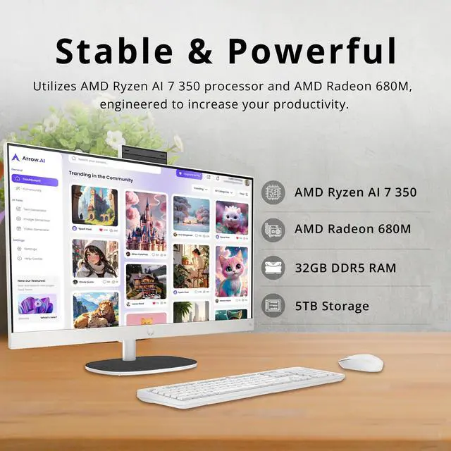 Boost productivity with the HP 27" FHD Touchscreen All-in-One Desktop. Featuring an AMD Ryzen AI 7 350 Processor, AMD Radeon 680M Graphics, and included Keyboard & Mouse.