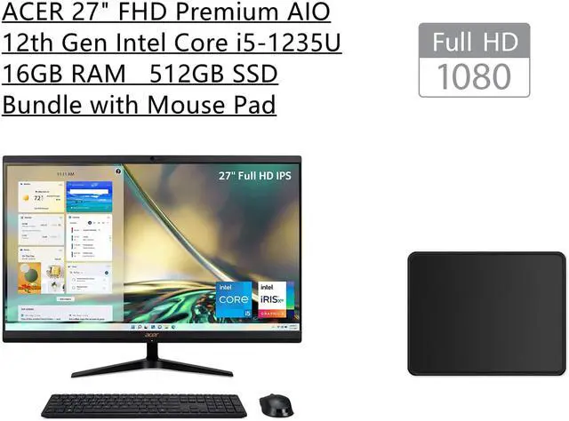 ACER Aspire 27" FHD Premium AIO Computer | 12th Gen Intel Core i5-1235U Processor | 16GB RAM | 512GB SSD | Intel Iris Xe Graphics | Wireless Mouse & Keyboard | Windows 11 | Bundle with Mouse Pad