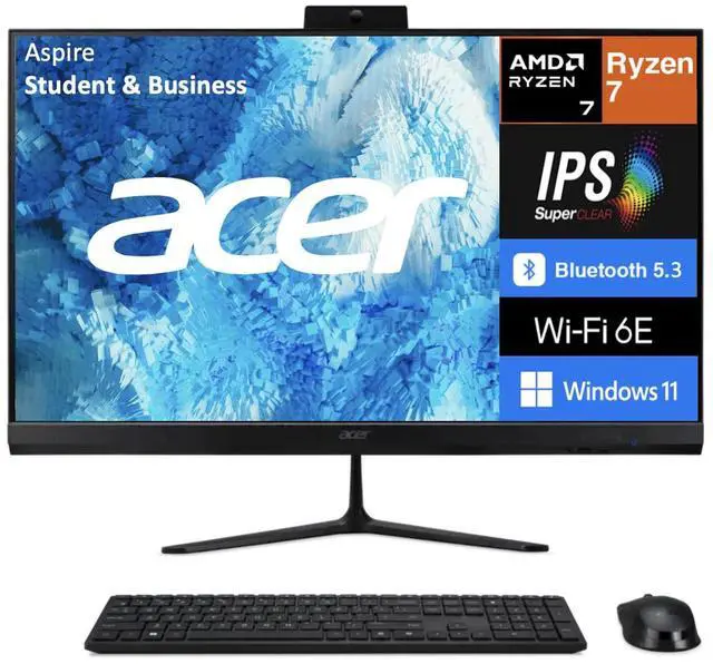 Model: Acer Aspire Form/Style: All in OneModel No: C27-2G-UR17Processor: Zen 3 Gen AMD Ryzen 7 5825U 2.00GHz Processor (upto 4.5 GHz, 16MB Cache, 8-Cores, 16-Threads, )Memory: 32GB DDR4 SO-DIMMGraphics: AMD Radeon Integrated Graphics, Storage: 1TB PCIe SSD (Solid State Drive)Operating System: Windows 11 Home-64Display: 27" IPS FHD (1920x1080) 120Hz 16:9 DisplayConnectivity: 802.11ax Wifi, Bluetooth 5.3, RJ-45Ports/Slots:, 2 USB 2.0, HDMI, 1 Display Port, 1 x Microphone Jack, 1 x Headphone JackInput/Output: Webcam, Black, USB Keyboard, Wireless Mouse, Battery: 65W PSU, Other Features, Color: BlackWeight: 11.1lbProduct Dimensions (WxLxH): 19 IN x 24.15 IN x 6.5 IN1 Year Manufacturer warranty from Velztorm (Professionally upgraded by Velztorm)