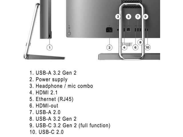 - Wi-Fi 6 2x2 AX & Bluetooth 5.1. Rear Ports: 1x HDMI 2.1 TMDS, 1x HDMI-in, 1x USB-C 2.0 Gen 2 with DisplayPort-In function (Only for QHD models), 1x USB-C 3.2 Gen 2, 1x USB 2.0, 1x USB 3.2 Gen 2, 1x Ethernet (RJ-45), 1x headphone / microphone combo jack (3.5mm), 1x mode switcher, 1x power connector; Left Ports: 1x USB 3.2 Gen 1.