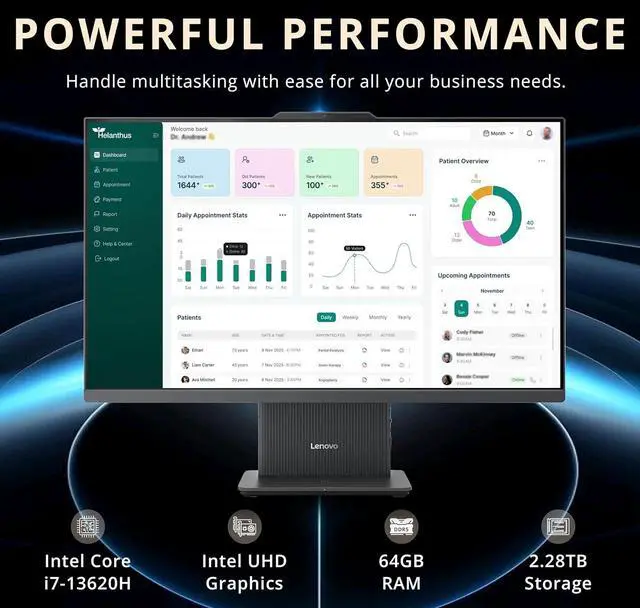 The Lenovo IdeaCentre All-in-One Desktop features a 27" FHD touchscreen display for vibrant, interactive visuals, powered by the Intel Core i7-13620H Processor for fast, efficient performance and smooth multitasking. Intel UHD Graphics ensures crisp, clear imagery, making it ideal for work, streaming, and everyday computing needs.