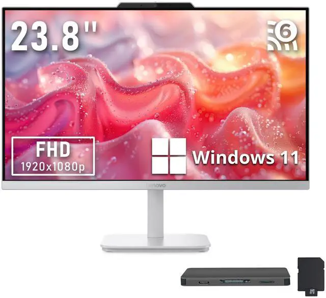The Lenovo A100 23.8" FHD All-in-One Desktop delivers efficient everyday performance with clear visuals, plus an HD webcam and included keyboard and mouse for ready-to-use productivity.