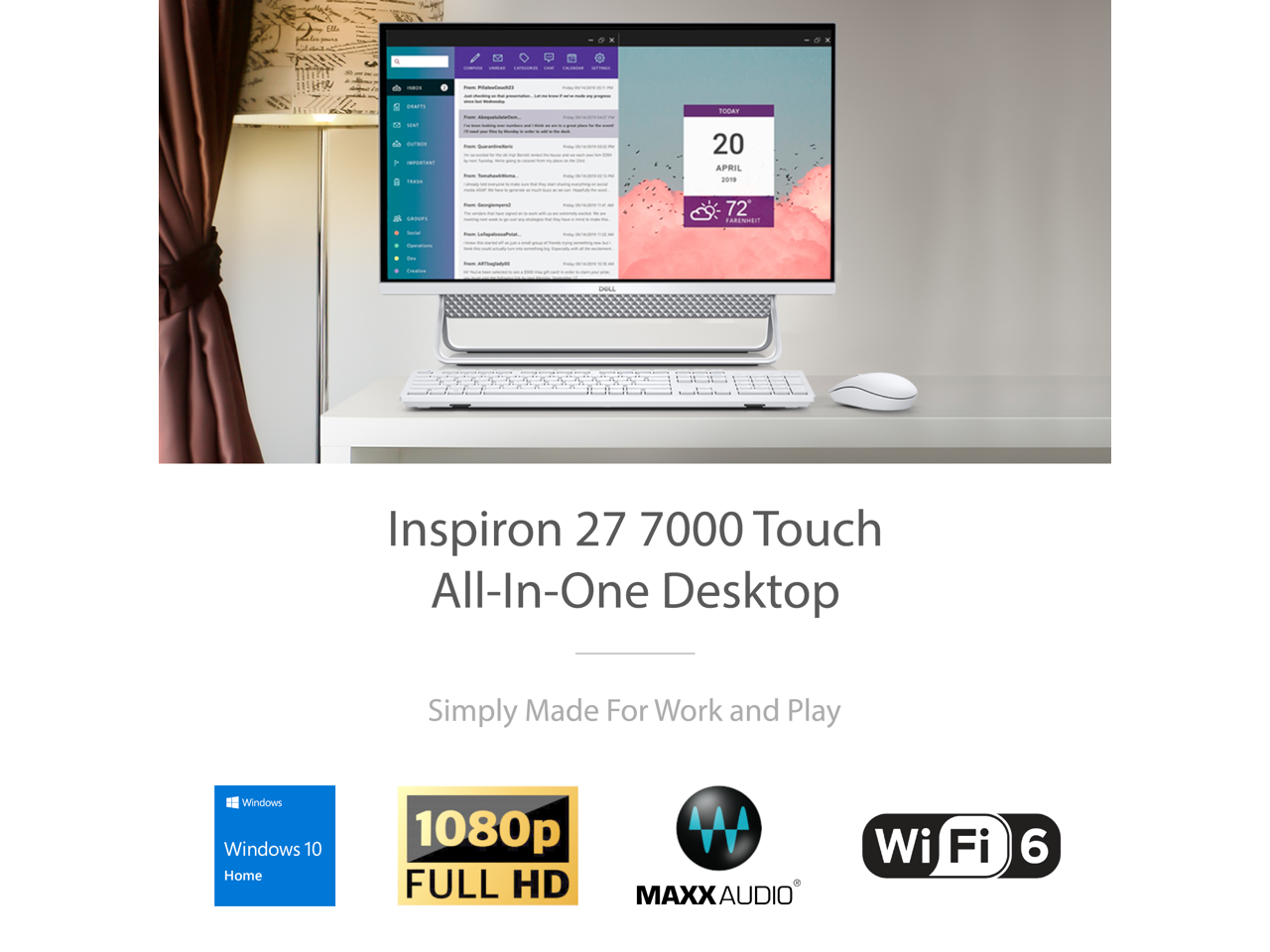 2021 Dell Inspiron 7700 27 All-in-One Desktop, 27" FHD Touchscreen, i7-1165G7, GeForce MX330, 16GB RAM, 512GB SSD + 1TB HDD, Webcam, WiFi 6, Bluetooth 5, Wireless Keyboard and Mouse, Win 10 Home