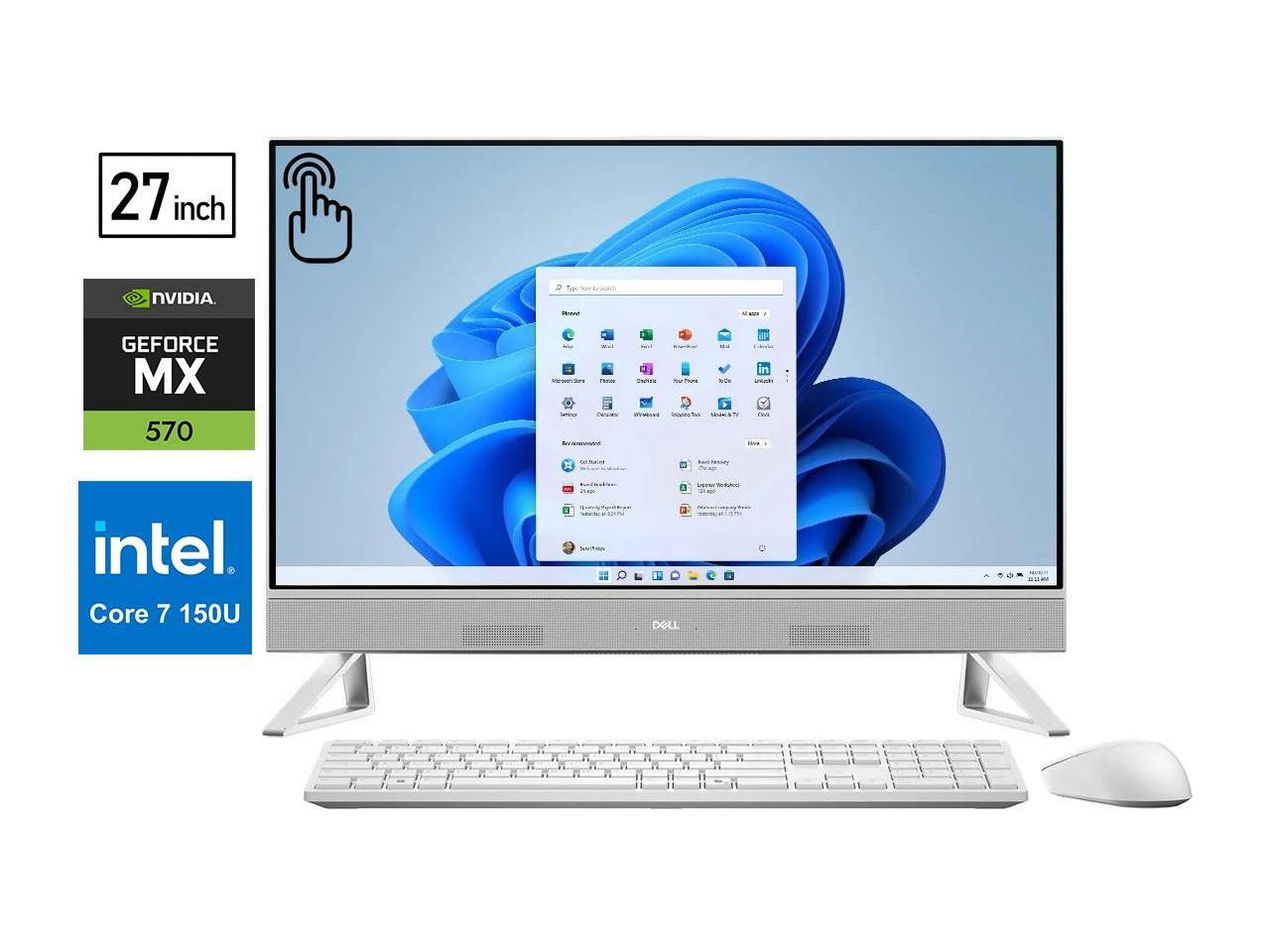Dell All-in-One 27" FHD Touchscreen Desktop Intel core 7 150U NVIDIA GeForce MX570A 32GB DDR5 RAM 1TB SSD Wi-Fi 6E Bluetooth 5.3 Keyboard & Mouse Stereo speaker HDMI RJ45 Windows 11 Pro White
