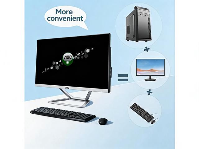 AOC All-in-One Business Desktop 23.8" FHD Display AMD R5 3500U Processor up to 3.7GHz 16GB RAM 512 GB SSD Windows 11 Wi-Fi Keyboard&Mouse Dual Speakers Adjustable Angle Height PC Office Work/gaming