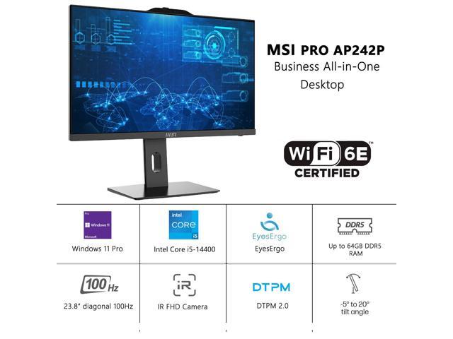 MSI PRO Business All-in-One Desktop, 23.8" FHD 100Hz, Intel Core i5-14400, 64GB DDR5, 2TB SSD, Wi-Fi 6E, Wireless KB & Mouse, Windows 11 Pro, Black