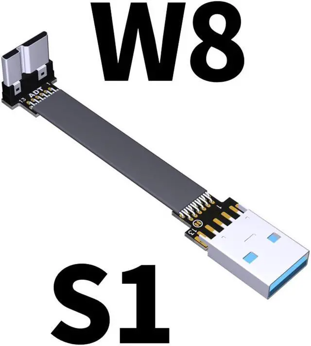 • ADT-Link S-W Aerial Shield USB 3.0 Flat Ribbon Cable FFC FPV USB3.0 Micro B Angled Male to Female Foldable Axial Elbow Cable(S1-W8)(15cm)