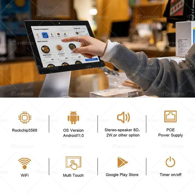 For corporate meeting rooms, this all in one PC and poe tablet functions as Commercial displays, presenting meeting agendas, presentation slides, and real-time notes clearly. The touchscreen supports interactive annotations, facilitating effective communication among team members, and the tablet with hd-mi output allows for easy connection to external projectors for larger group viewing. The poe technology simplifies installation by combining power and data transmission through a single rj45 cable, eliminating cable clutter in professional meeting spaces.