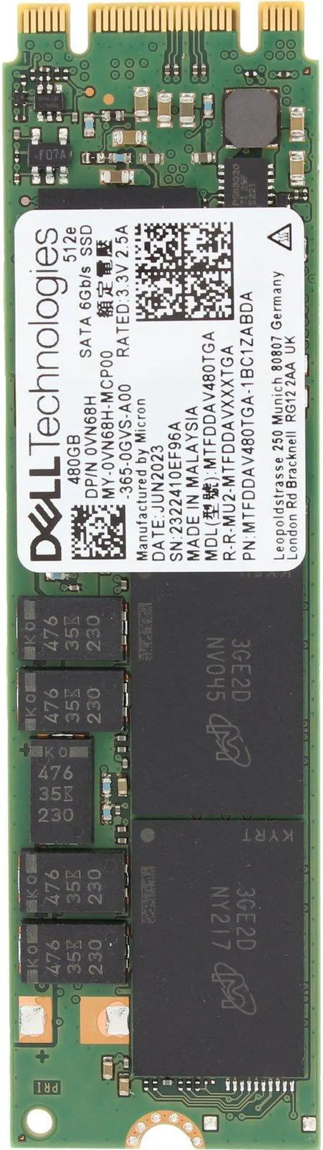 Up for sale is a Dell 480GB 6Gbps SATA RI TLC 2280 M.2 SSD 5400 Pro (VN68H). All components are tested and firmware is updated.