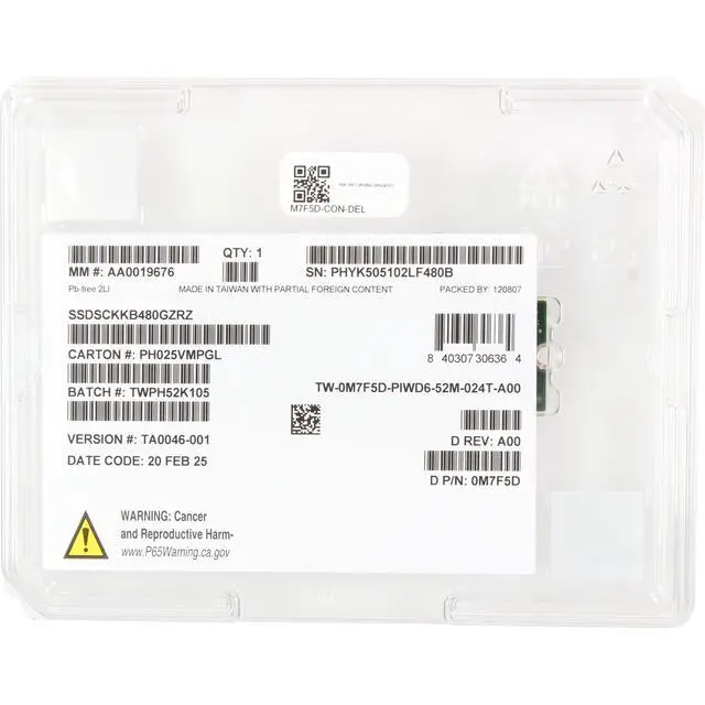 Up for sale is a Dell 480GB 6Gbps SATA RI TLC 2280 M.2 SSD D3-S4520 (M7F5D-OSTK). All components are tested and firmware is updated.