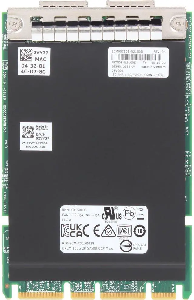 Up for sale is a Dell Broadcom 57508 Dual 100GbE QSFP56 OCP 3.0 (2VY37). All components are tested and firmware is updated.