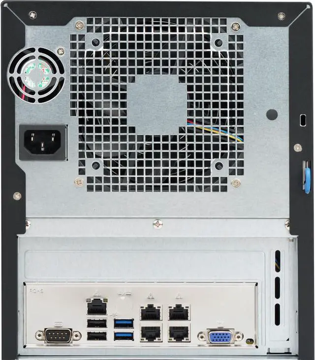 Key Features• Space-efficient, compact design• Embedded Applications• Cloud and Virtualization• NAS Servers• SOHO Entry-Level Server• Corporate- WINS, DNS, Print, Login• e-Business1. Intel® Atom processor C2758F, SoC, FCBGA 1283, 20W 8-Core2. 4x 3.5" Hot-swap SATA Trays; 2x 2.5" internal HDD bays3. 1x PCI-E 2.0 x8 slot4. Up to 64GB ECC SODIMM 4 DIMM slots5. Quad LAN with Intel® C2000 SoC6. 250W Flex ATX Multi-output Bronze Power Supply