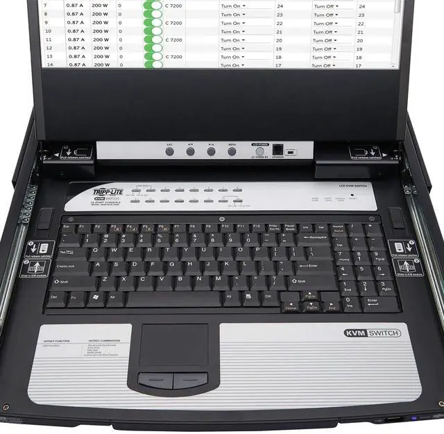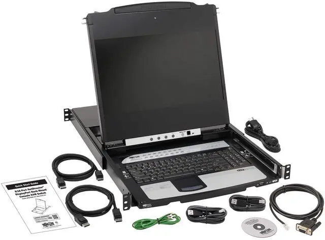 Eaton Tripp Lite Series NetDirector 16-Port DisplayPort KVM Switch Console with 17 in. LCD IP Remote Access Dual Rail 1U Rack-Mount TAA
